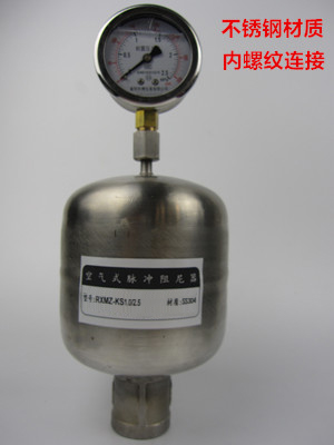 空氣式脈沖阻尼器是一個(gè)密封的罐體,依靠液體直接壓縮罐內(nèi)的空氣起到緩沖的效果。空氣式阻尼器最大的弊端就是里面的空氣會逐漸溶解到輸送介質(zhì)中,導(dǎo)致可壓縮的空氣越來越少,能起到緩沖的作用也隨之減小,需定期將阻尼器從設(shè)備上拆卸后排空里面的介質(zhì),保證內(nèi)部的空間,所以在使用過程中維護(hù)稍顯麻煩。但是其價(jià)格相對低廉,所以適合一些對緩沖要求不是太高的系統(tǒng)使用。
